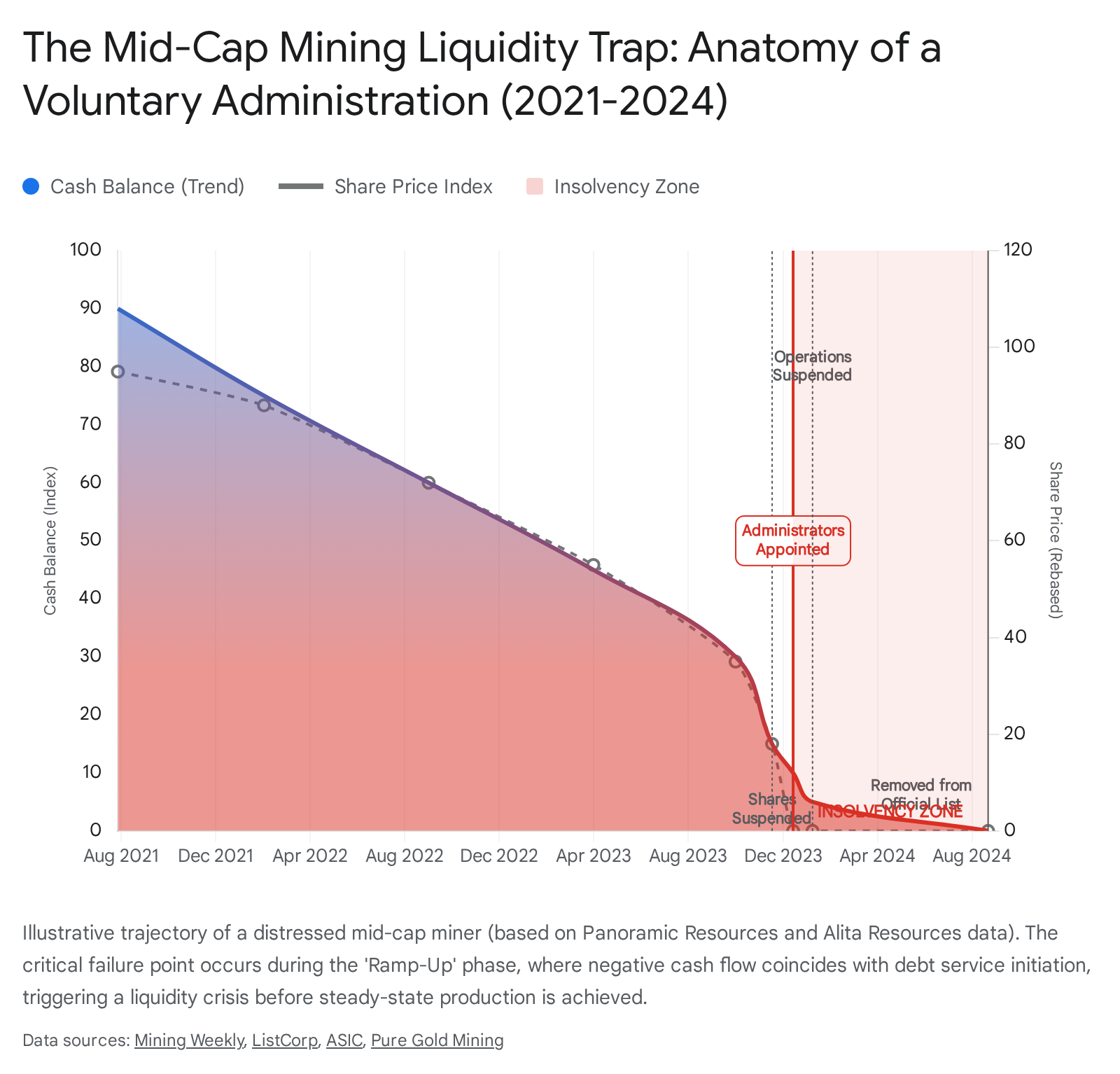 Drawing upon detailed case studies of mid-cap failures in Australia and Canada, specifically the voluntary administrations of Panoramic Resources and Alita Resources, this research illustrates how the structure of Western project finance precipitates a valley of Death during the critical ramp-up phase. Close observers of the mining industry can nominate any number of these historical cases.